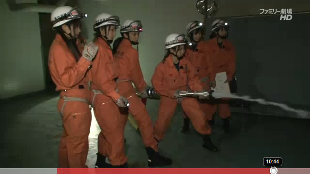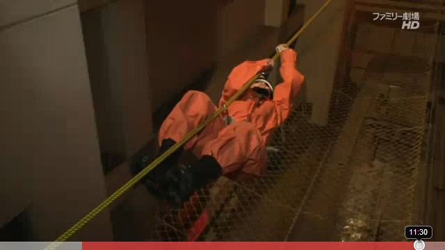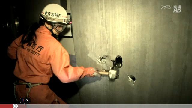 現場は火事(の想定)。ケムリがたち込めるビル内。地下から進入して上の階へ進む。