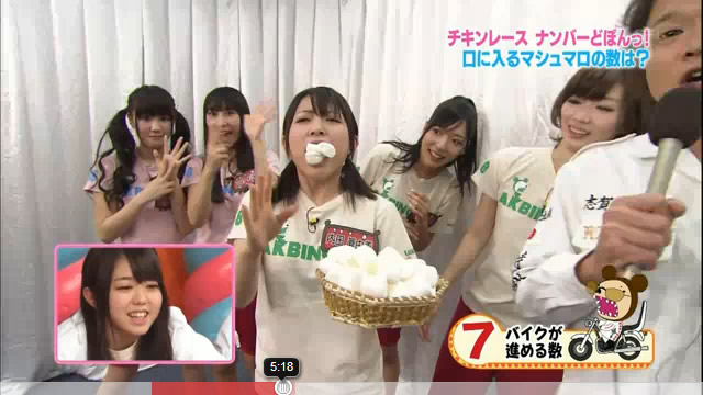 内田真由美は、結構大きめのマシュマロを口に7つ詰め込むという荒業を披露。
